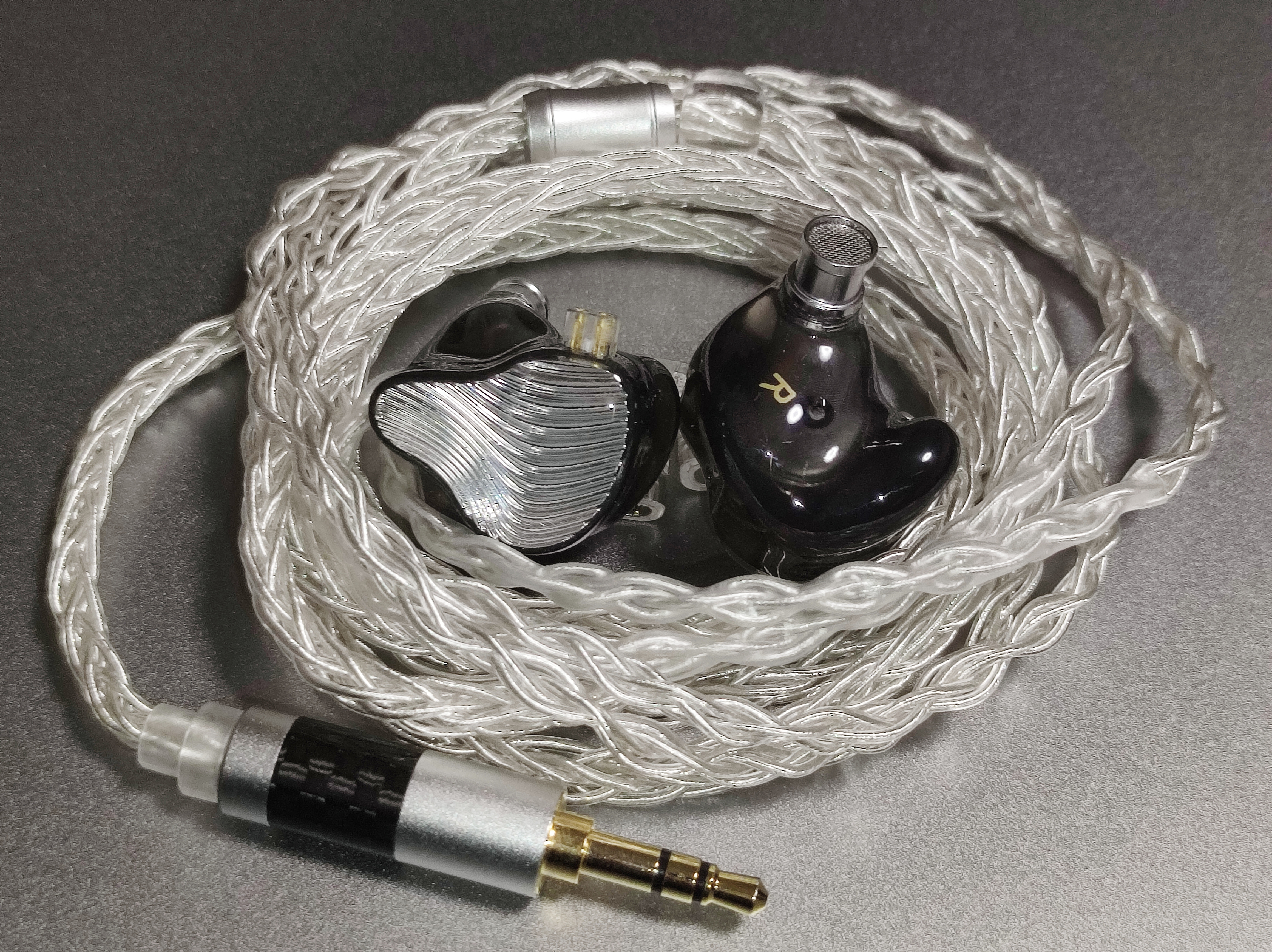 ケーブルは100コアの銀メッキケーブルで、最近の中華イヤホンでよく見かける可もなく不可もなくくらいのクオリティです。写真のように編み込み具合は綺麗ですが、しなやかな付け心地やサウンドにこだわる方は社外品のケーブルにリケーブルするのも良いと思います。
